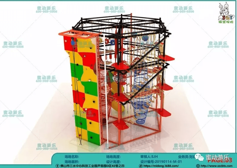 拓展項目升級版2.0——繩索+攀巖,二者合二為一,既具有繩索與攀巖的功能,又節(jié)省空間;外觀采用亮色調,看一眼就能吸引住游客的眼球,同時還增加了滑梯,豐富了設備的玩法。繩索攀爬可以讓不同年齡層的小朋友體驗挑戰(zhàn),攀巖適合于年齡較大的小朋友和成人,可以說這是一個大人小孩都可參與的游樂項目。