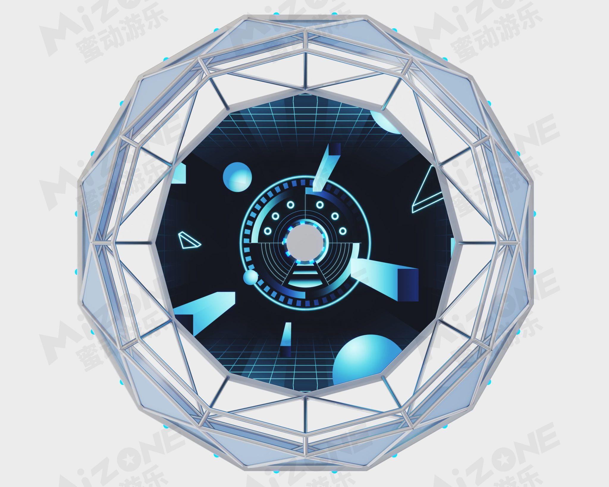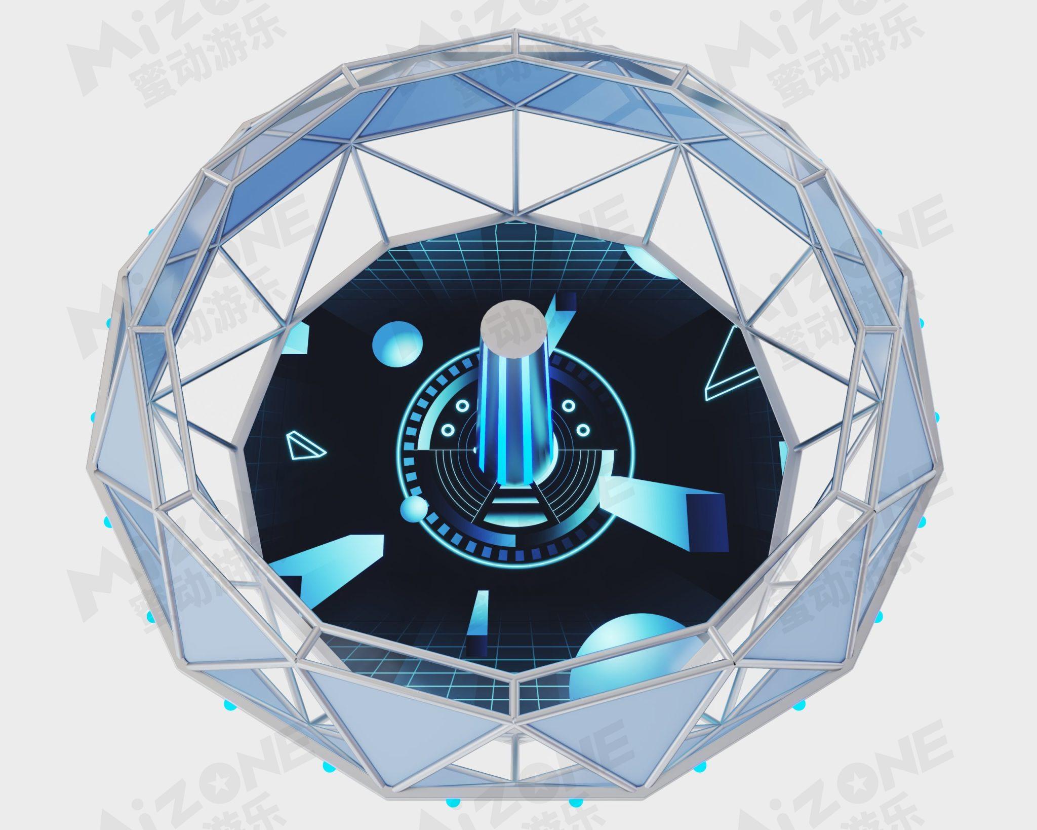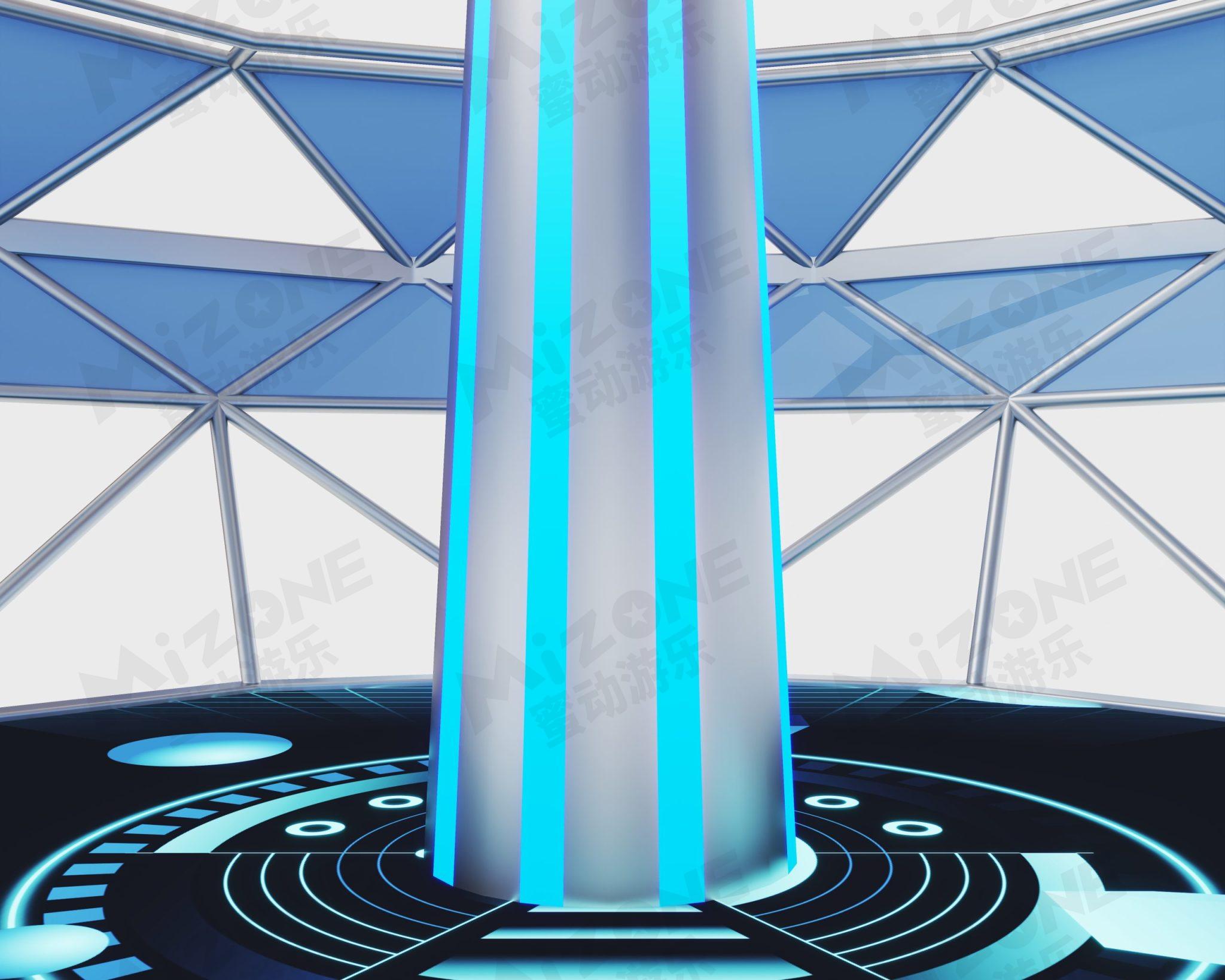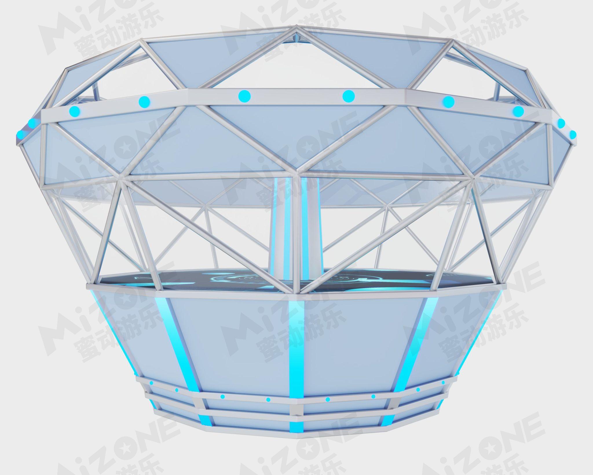 采用幾何形狀通過發(fā)光部件和操作顯示單元的設(shè)計(jì)來增加科技感和現(xiàn)代感。鉆石離心機(jī)的外觀呈現(xiàn)為動(dòng)態(tài)轉(zhuǎn)動(dòng)的狀態(tài),內(nèi)部的人緊緊貼附在離心機(jī)的內(nèi)壁上仿佛被強(qiáng)大的離心力緊緊吸附,營(yíng)造出一種超級(jí)刺激和震撼的視覺效果。