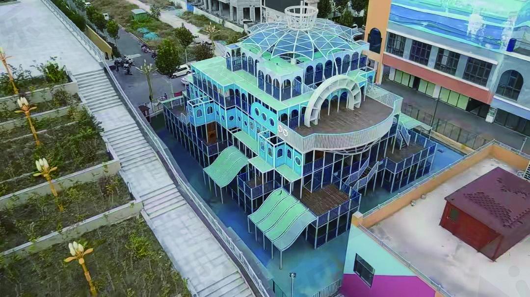 想象一下,你走進了一個充滿魔法的戶外游樂場!首先映入眼簾的是一道絢爛的彩虹滑梯,它就像是從天而降的彩虹,邀請你滑入一個色彩斑斕的世界。接著,你會被一座神秘的深海迷宮所吸引,它就像一個巨大的寶藏箱,等待著勇敢的探險家去揭開它的秘密。