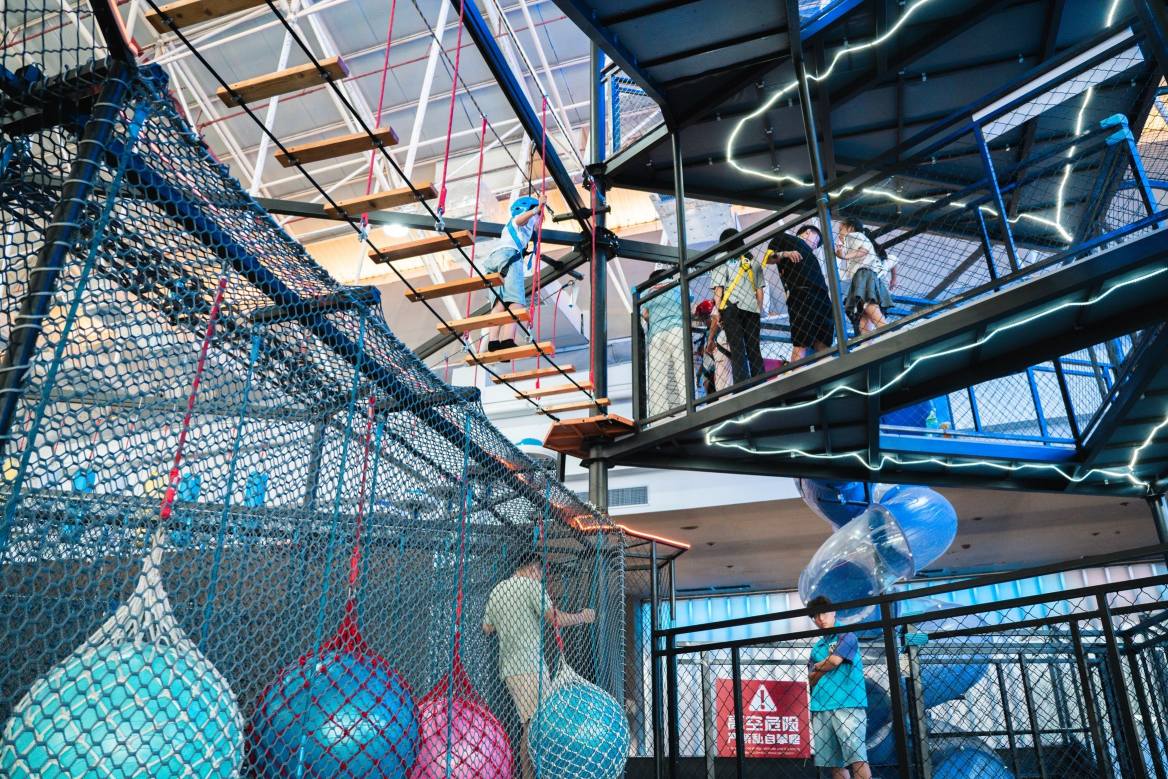 魔方攀巖有暗黑光電科技風(fēng)格的,視覺效果震撼,凸起棱角全軟包,抓握感好。反向蹦極設(shè)備安全可靠,座艙像火箭一樣被“發(fā)射”到空中,體驗者能放心感受刺激。這些設(shè)備不僅有趣味性,還能讓不同年齡段的人在玩的時候鍛煉思維和協(xié)作能力。