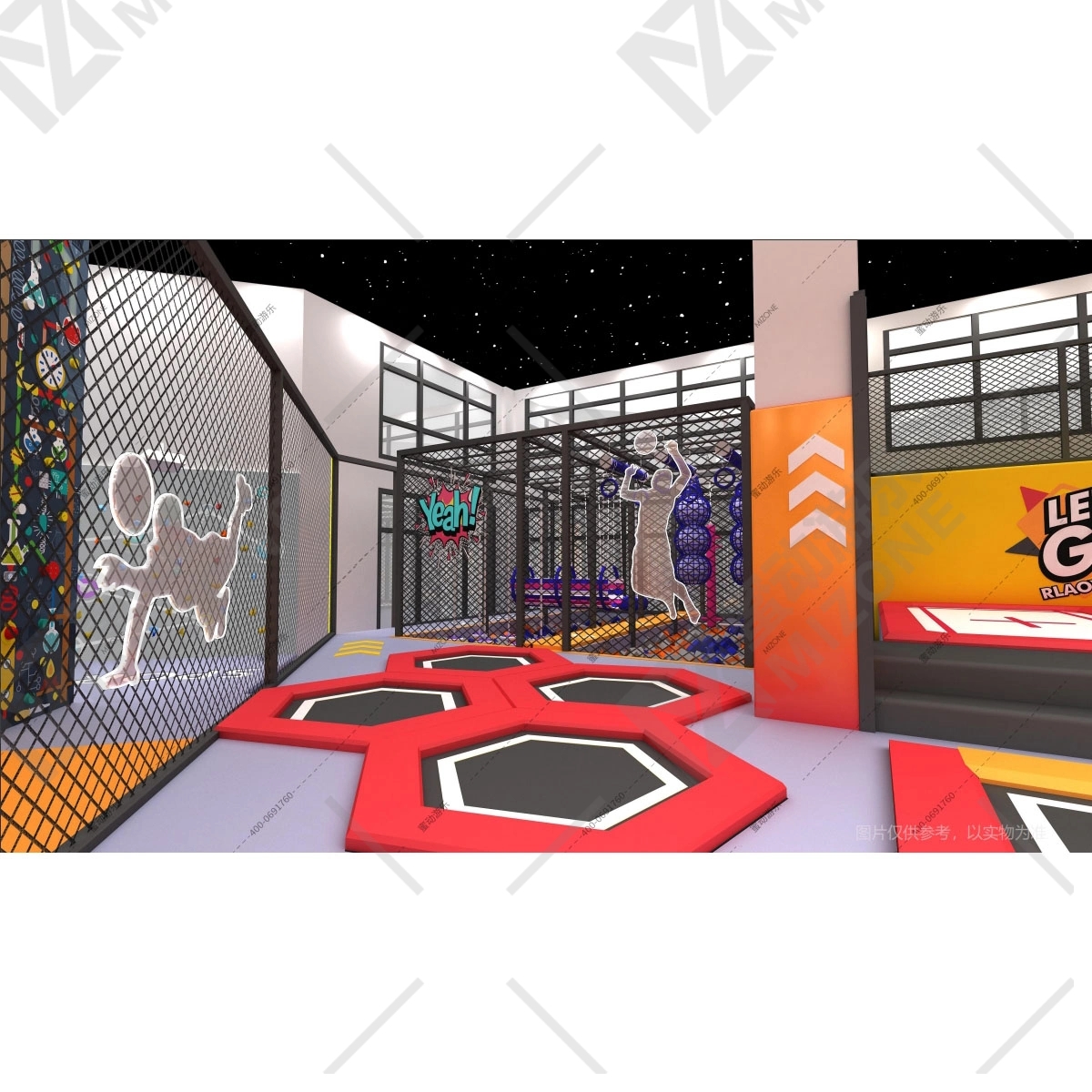 蹦床公園最怕“安全出事”,所以我們從設(shè)計到生產(chǎn)都卡著國際標(biāo)準走:美國ASTM F1918(全球首個室內(nèi)游樂場安全標(biāo)準)、加拿大CSA認證、歐盟EN1176標(biāo)準,這三個認證國內(nèi)沒幾家廠家能全過,我們從2015年就拿到了。首席設(shè)計師是建筑結(jié)構(gòu)工程系出身,設(shè)計過17米高的拓展設(shè)備,銀川商場挑高6米或8米的場地,他都能合理規(guī)劃承重;焊接工人都是10年以上經(jīng)驗,每道焊縫都按圖紙尺寸來,品檢部門會拿卡尺量每個部件,誤差超過2mm就返工——畢竟設(shè)備安全,就是投資者的生命線。